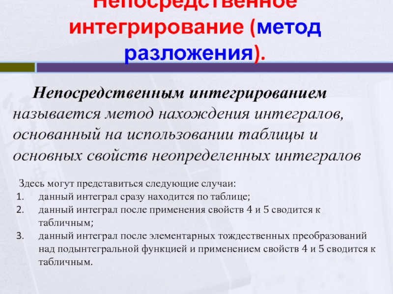 Непосредственное интегрирование (метод разложения).