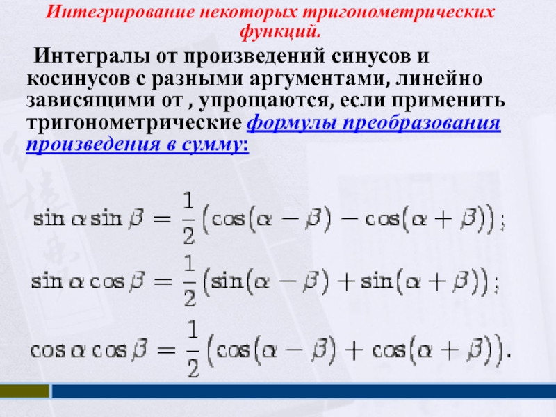 переменной).Интегрирование некоторых тригонометрических функций