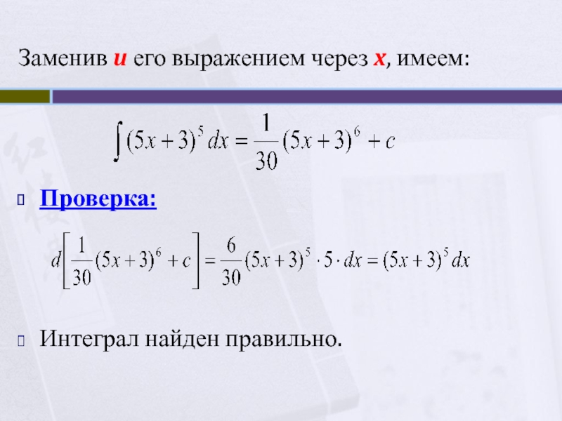 Этапы интегрирования функций методом подстановки (замены