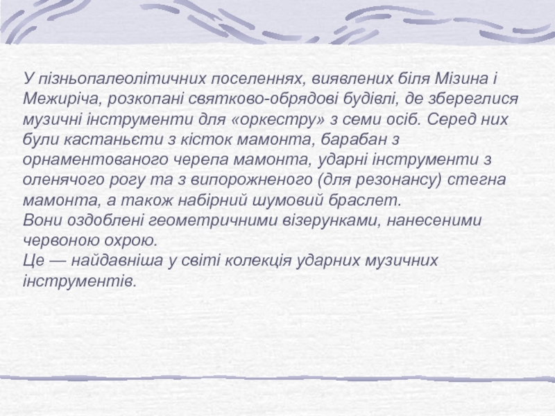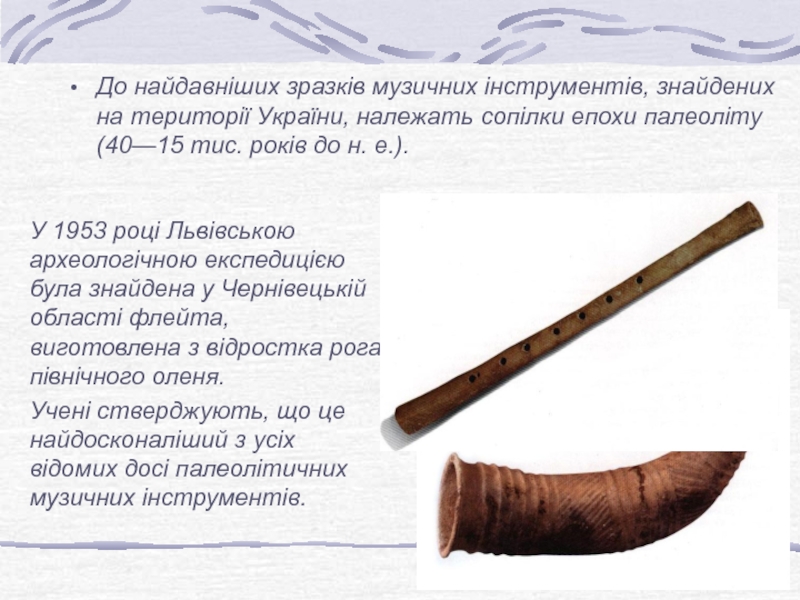 Слайд 2До найдавніших зразків музичних інструментів, знайдених на території України, належать
