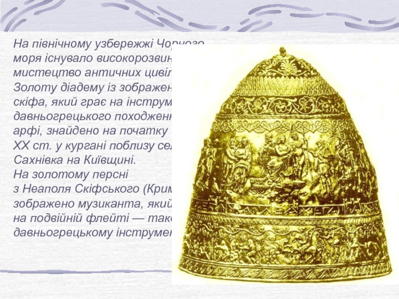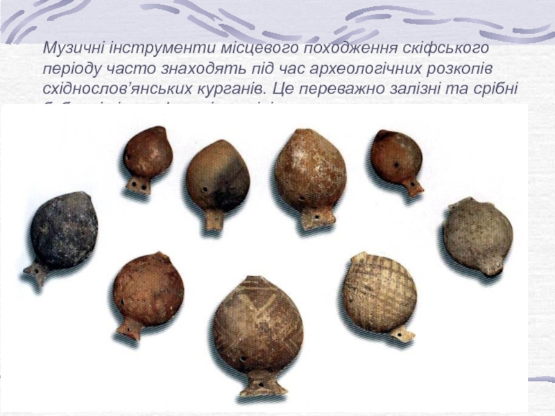 Слайд 4Музичні інструменти місцевого походження скіфського періоду часто знаходять під час