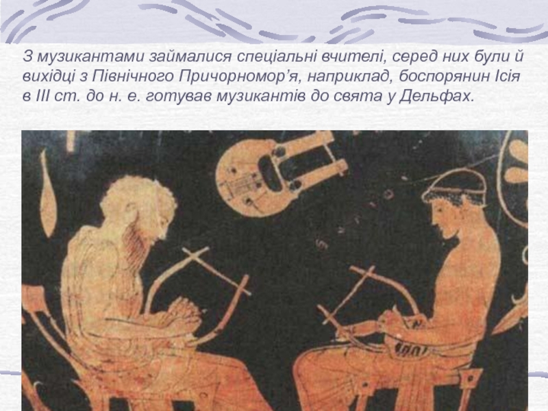 Слайд 11З музикантами займалися спеціальні вчителі, серед них були й вихідці