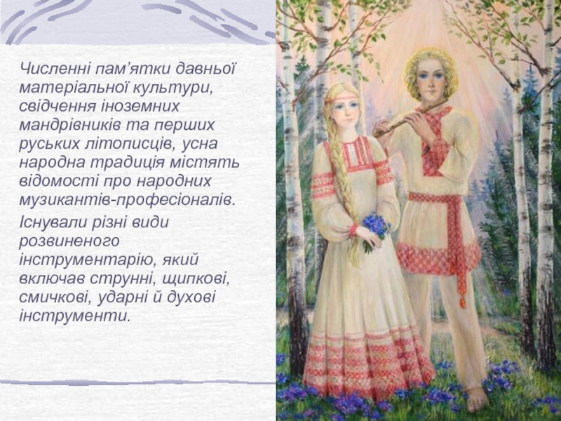 руських літописців, усна народна традиція містять відомості про народних музикантів-професіоналів.