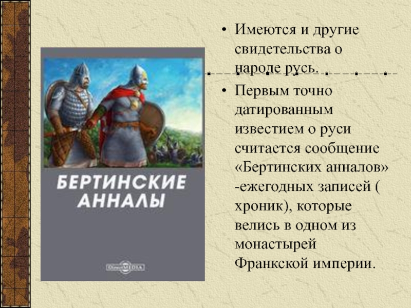 известием о руси считается сообщение «Бертинских анналов»-ежегодных записей ( хроник),