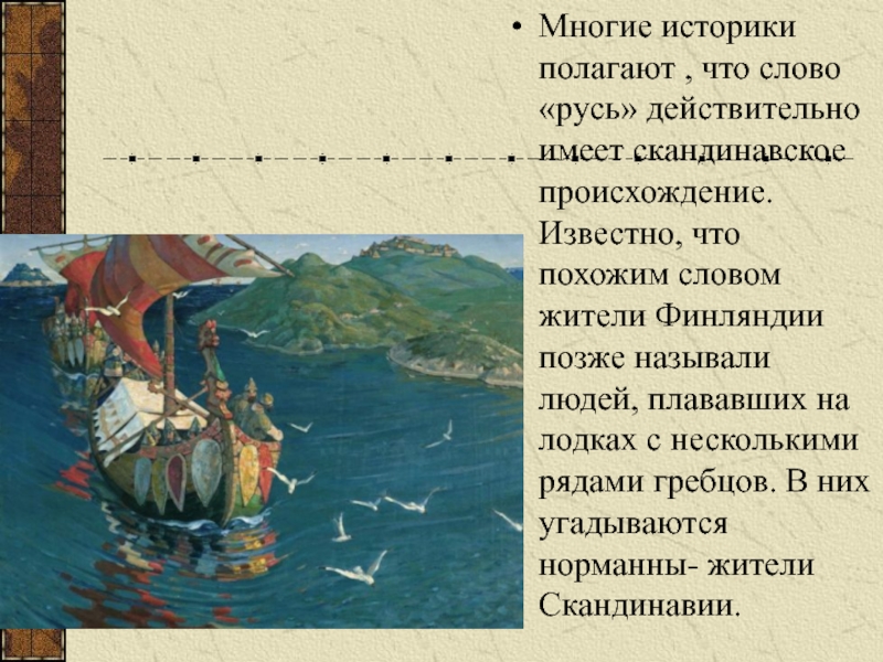 Слайд 12Многие историки полагают , что слово «русь» действительно имеет скандинавское