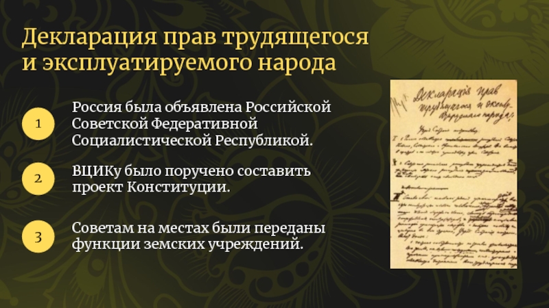 Исполнительной властью наделялся Совет Народных Комиссаров.