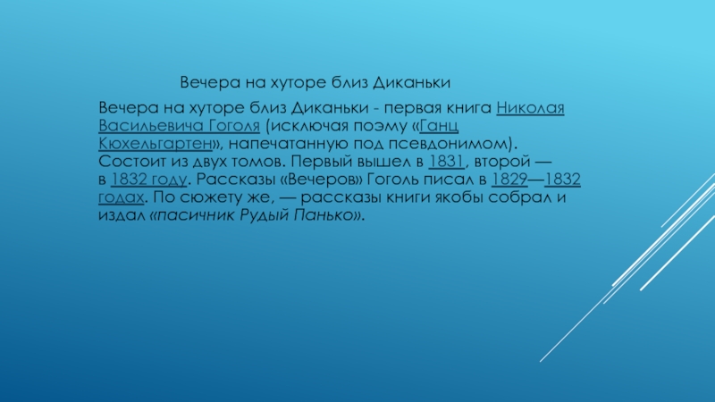 Слайд 2                       Вечера на хуторе близ Диканьки