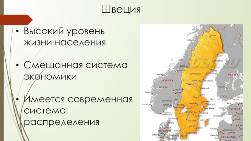 ШвецияВысокий уровень жизни населенияСмешанная система экономикиИмеется современная система распределения