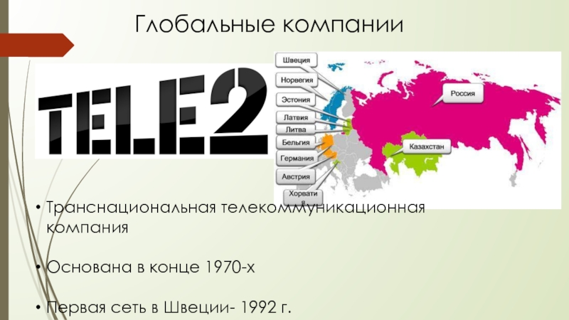 Глобальные компанииТранснациональная телекоммуникационная компанияОснована в конце 1970-хПервая сеть в Швеции- 1992 г.