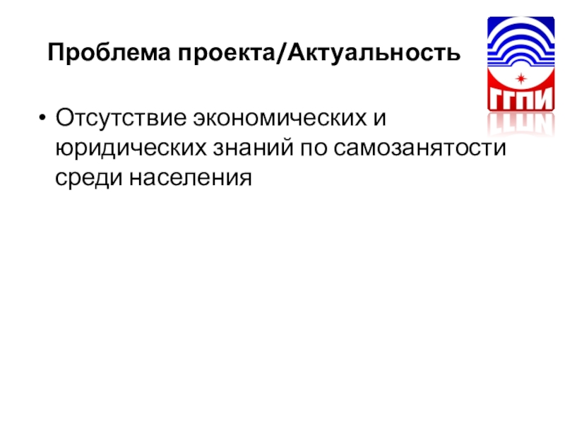 Проблема проекта/АктуальностьОтсутствие экономических и юридических знаний по самозанятости среди населения