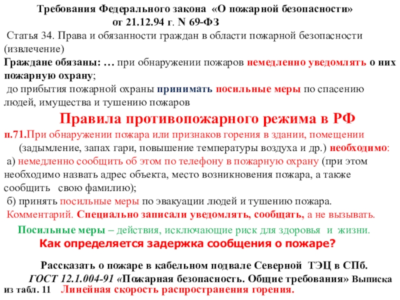 ГОСТ 12.1.004-91 «Пожарная безопасность. Общие требования» Выписка из табл. 11 Линейная скорость распространения горения.