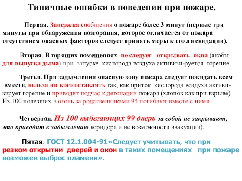 Вторая. В горящих помещениях не следует открывать окна (якобы для выпуска дыма) при запуске кислорода воздуха активизи-руется горение.