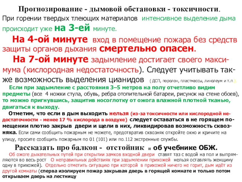 3. Открывать дверь присев ниже уровня дыма предотвратив отравление продук-