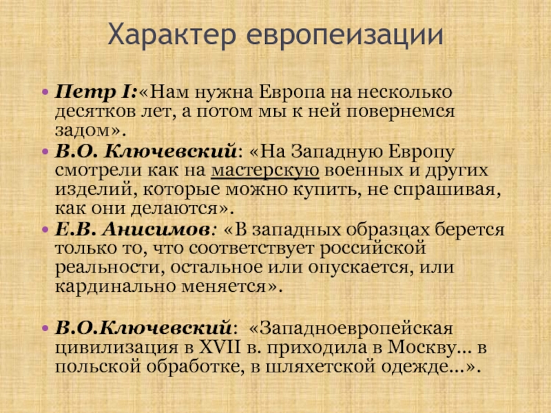 Слайд 4Характер европеизации