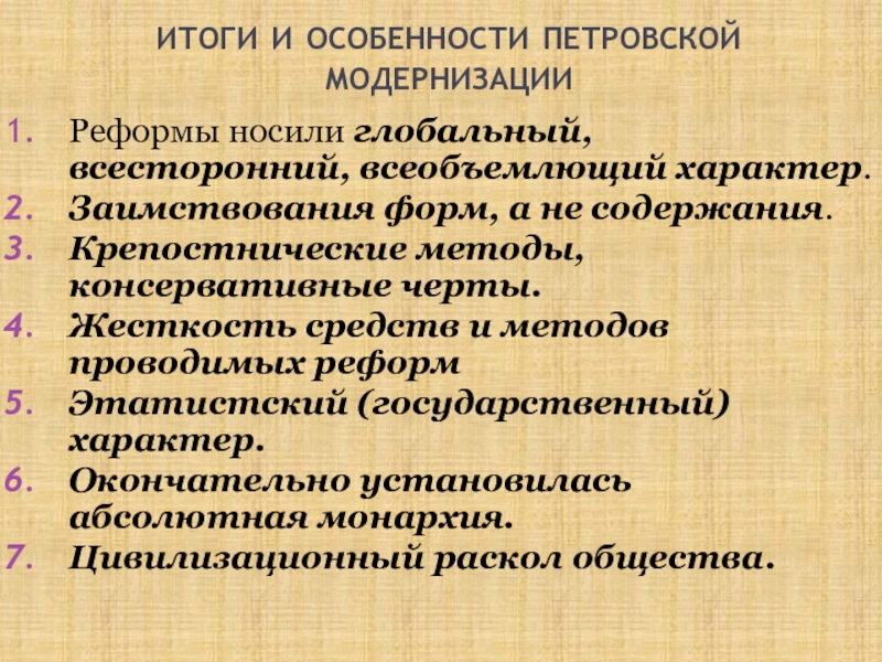 Слайд 56итоги и особенности петровской модернизации