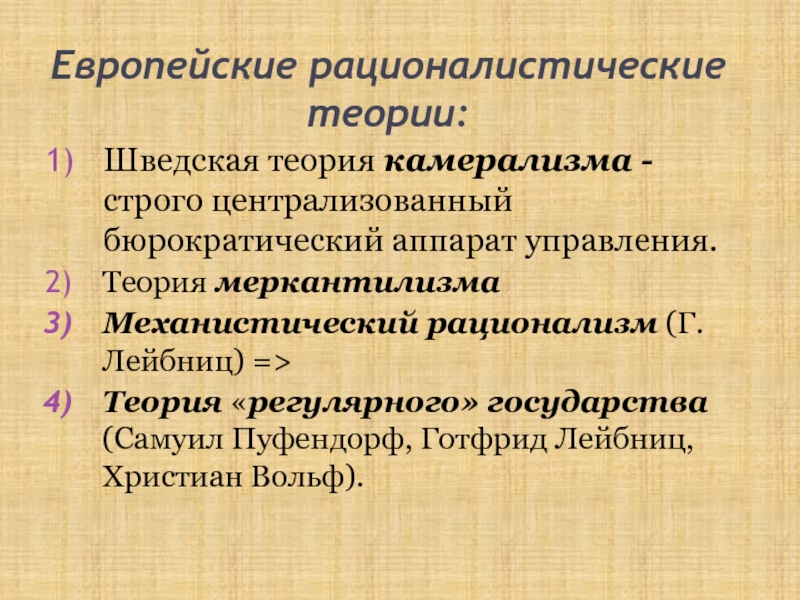 Слайд 15Европейские рационалистические теории: