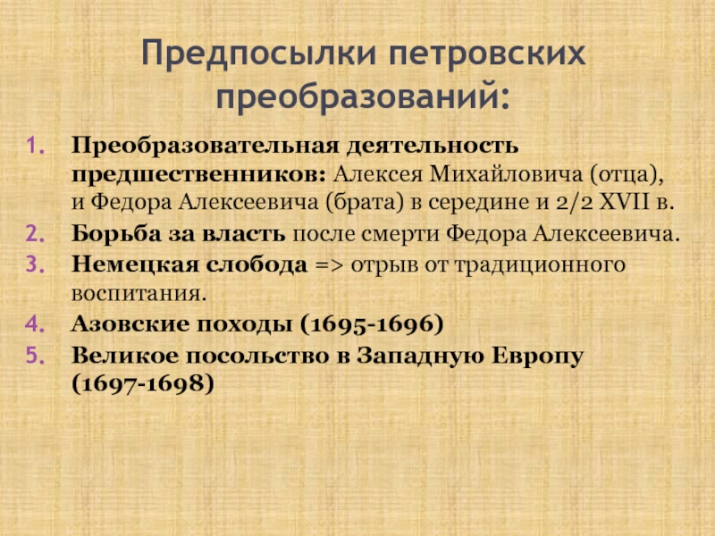 Слайд 14Предпосылки петровских преобразований: