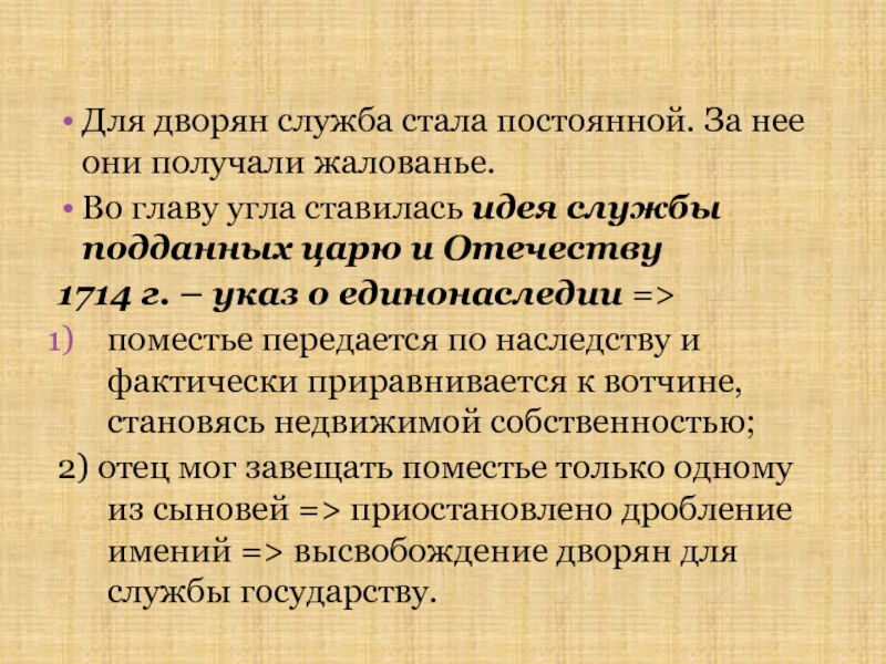 Слайд 47Для дворян служба стала постоянной. За нее они получали жалованье.
