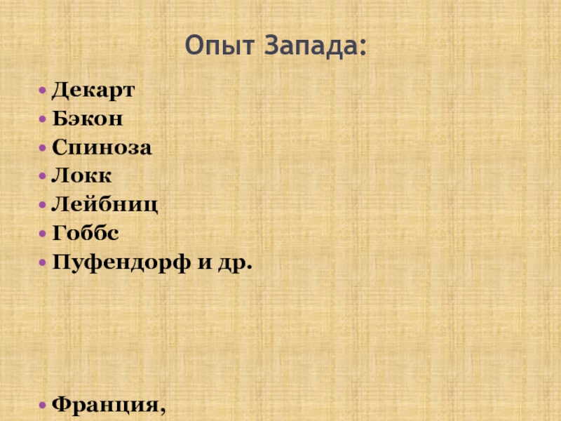 Пуфендорф, Готфрид Лейбниц, Христиан Вольф).
