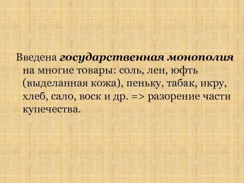 Ремесленники были насильственно записаны в цехи, а купцы – в гильдии в интересах контроля и налогообложения.