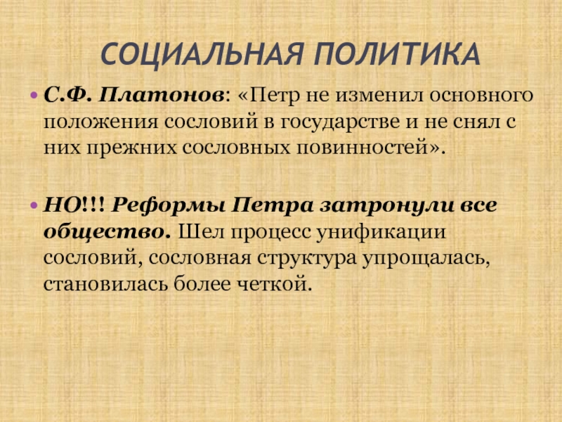С.Ф. Платонов: «Петр не изменил основного положения сословий в