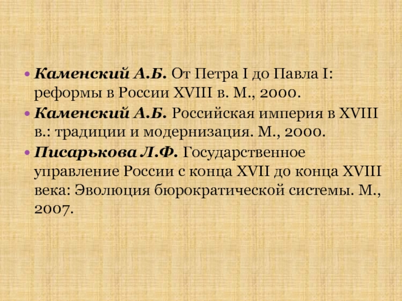 Слайд 13Каменский А.Б. От Петра I до Павла I: реформы в
