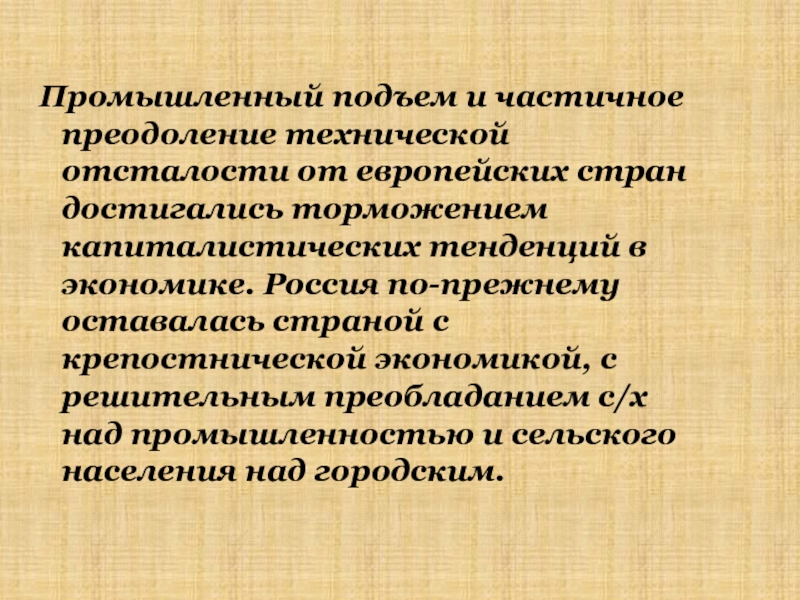Крепостнические методы, консервативные черты.