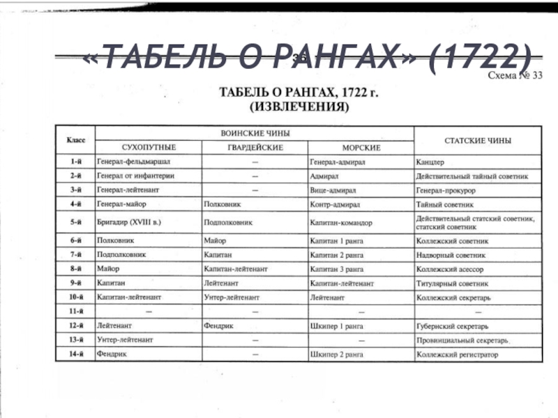 которых делился на 14 классов .«Табель о рангах» насчитывала 263 должности,