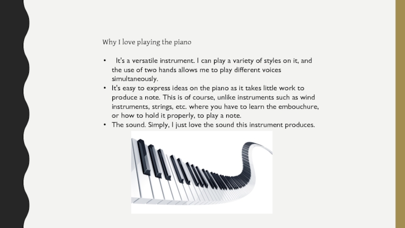 Why I love playing the piano It's a versatile instrument. I can play a variety of styles