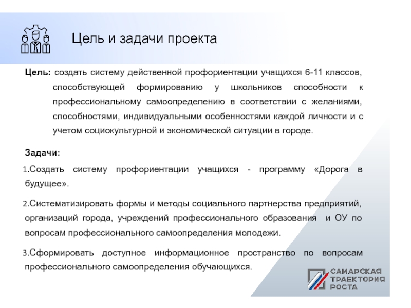 Систематизировать формы и методы социального партнерства предприятий, организаций города, учреждений профессионального образования и ОУ по вопросам профессионального самоопределения молодежи.