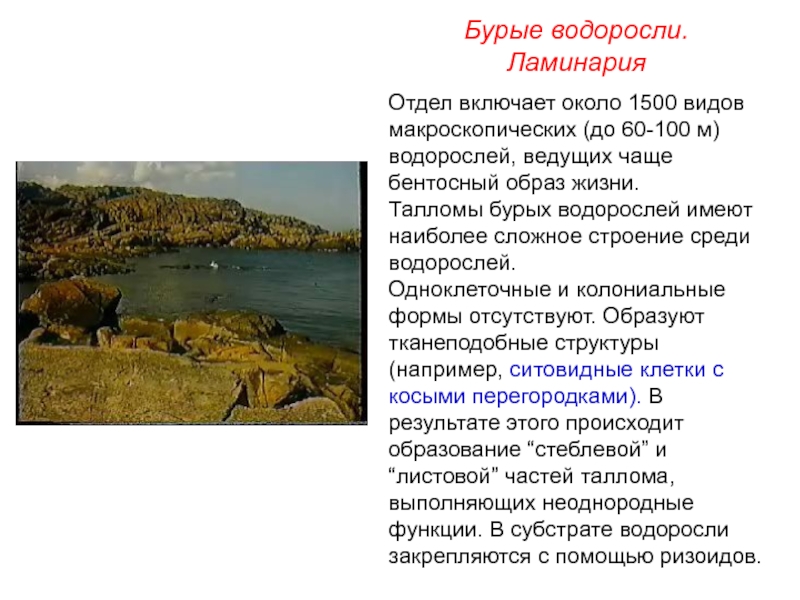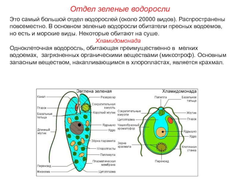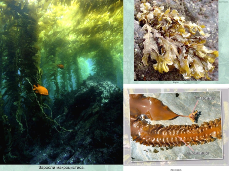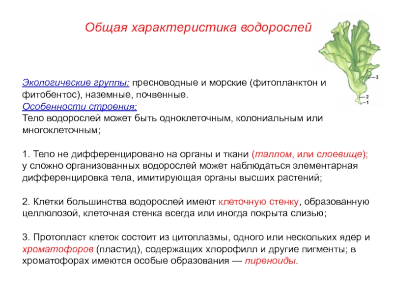 Многообразие. Обычно водоросли подразделяют на несколько отделов: красные (выделяемые в самостоятельное подцарство Багрянки), бурые, зеленые, золотистые, желто-зеленые, диатомовые, харовые и эвгленовые водоросли (образуют подцарство Настоящие водоросли).