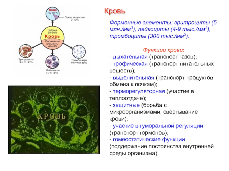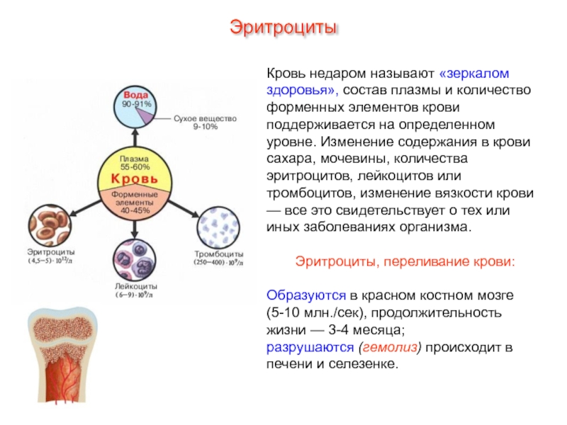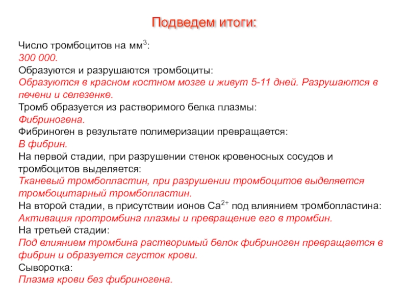 Тромбоциты, плоские безъядерные форменные элементы, образуются в красном костном мозге и живут 5-11 дней. Разрушаются в печени и селезенке. Как и лейкоциты способны к передвижению и образованию псевдоподий. Важнейшая функция — участие в гемостазе (свертывании крови).