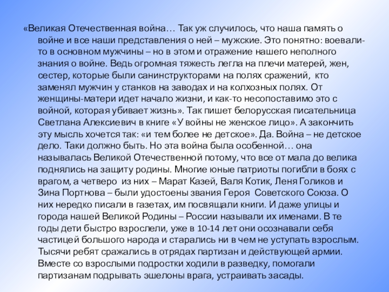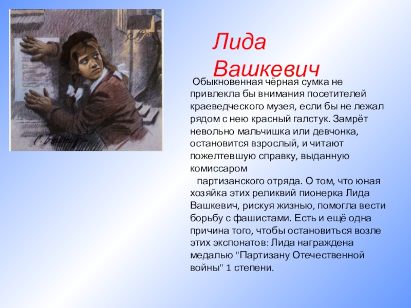 И Валя клятву сдержала. Разные испытания выпали на её долю. Но она выдержала. Выстояла. И свою борьбу продолжила уже в партизанском отряде. Воевала смело, наравне со взрослыми. За отвагу и мужество орденом Красной Звезды наградила Родина свою юную дочь.