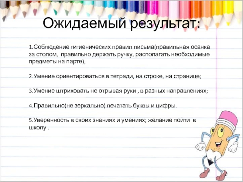 1.Соблюдение гигиенических правил письма(правильная осанка за столом, правильно держать