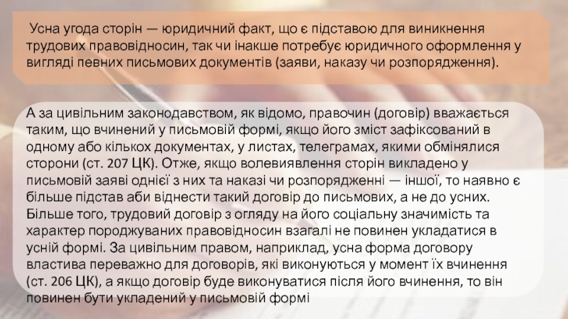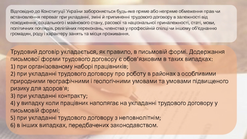 Трудовий договір укладається, як правило, в письмовій формі. Додержання письмової форми трудового договору є обов’язковим в таких випадках:
