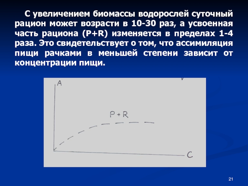 Слайд 21С увеличением биомассы водорослей суточный рацион может возрасти в 10-30