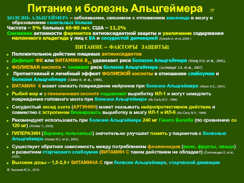 Протективный и лечебный эффект ФОЛИЕВОЙ кислоты в отношении слабоумия и болезни Альцгеймера (Clarke R. et al., 1998).