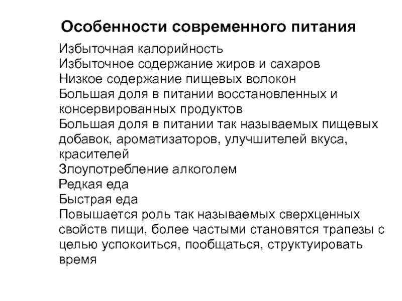Слайд 8Особенности современного питания