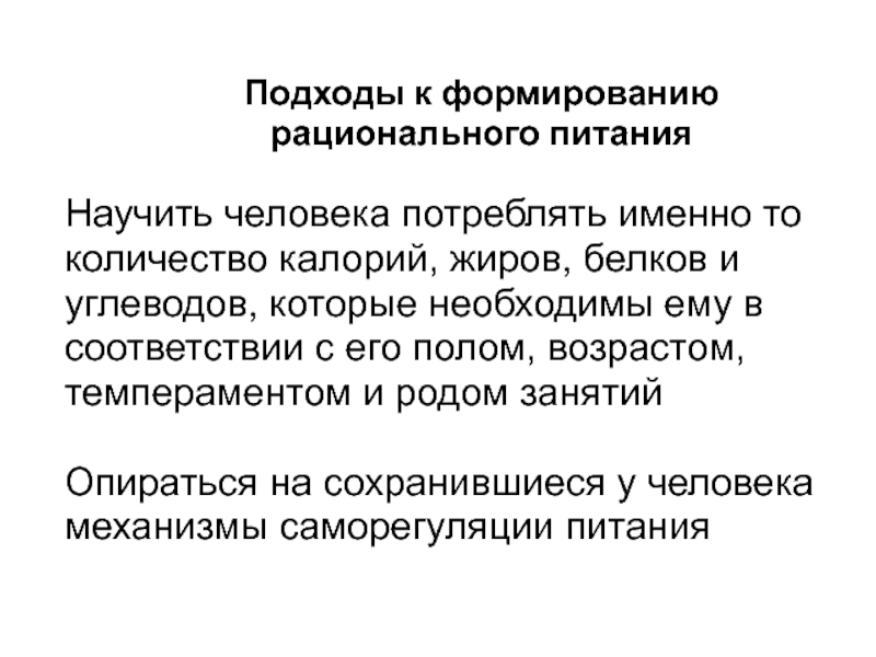 Слайд 12Подходы к формированию рационального питания