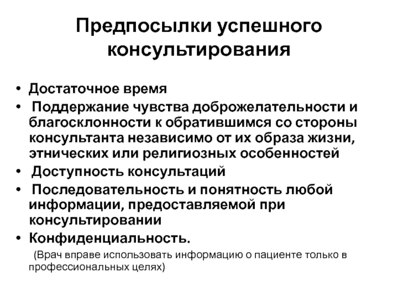 Слайд 21Предпосылки успешного консультирования
