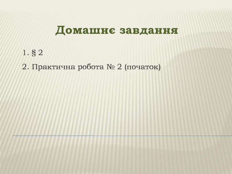 Домашнє завдання	1. § 2	2. Практична робота № 2 (початок)