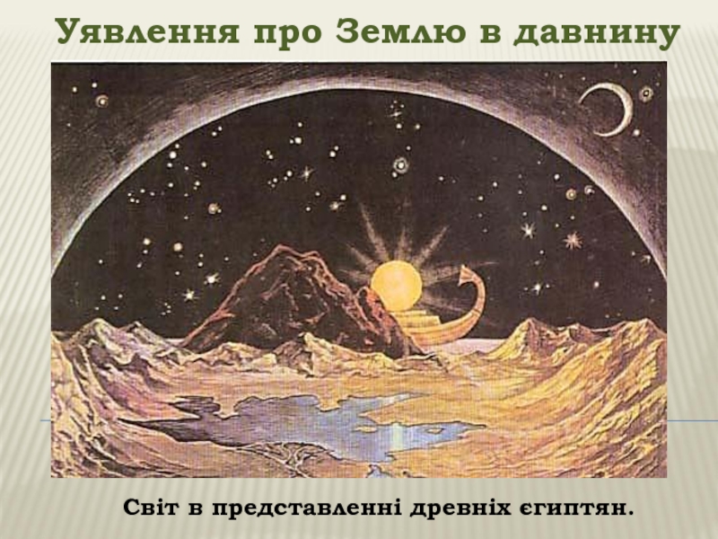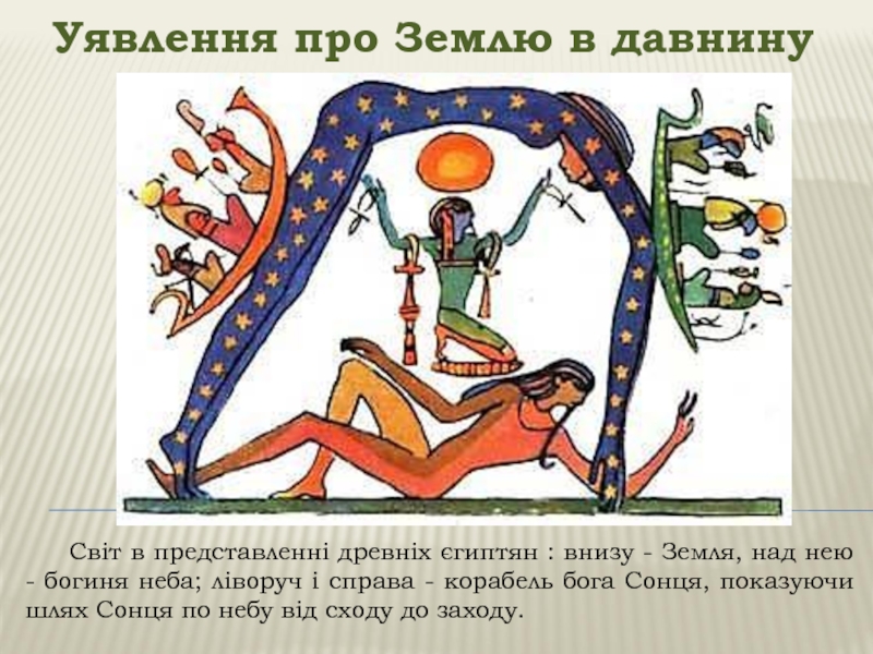 Уявлення про Землю в давнину	Світ в представленні древніх єгиптян : внизу - Земля, над нею - богиня