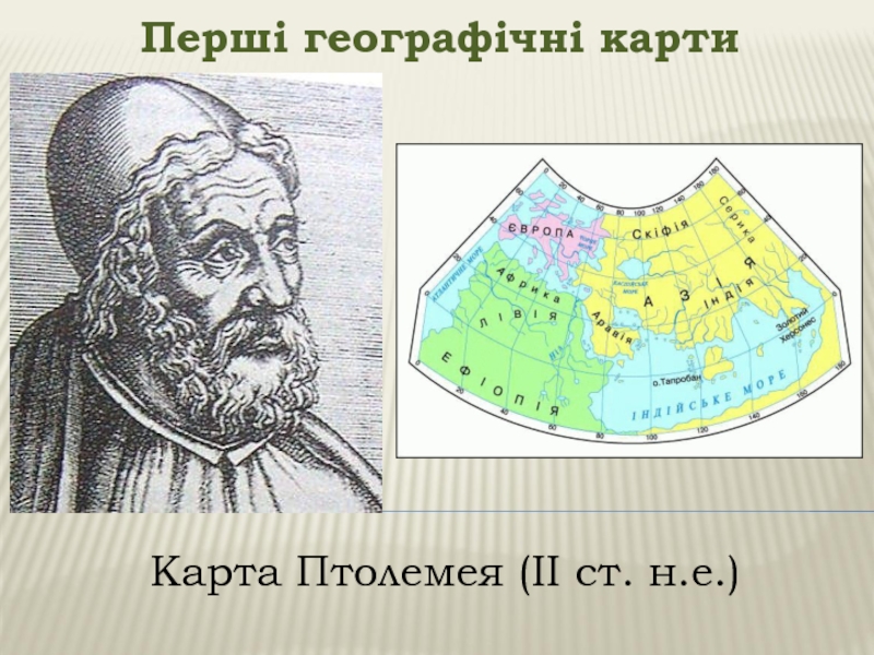 Перші географічні картиКарта Птолемея (ІІ ст. н.е.)