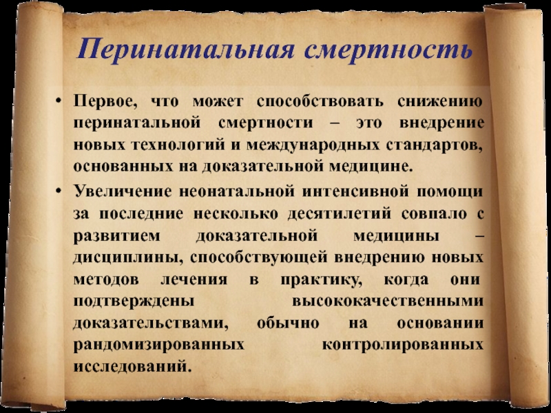 Слайд 47Первое, что может способствовать снижению перинатальной смертности – это внедрение