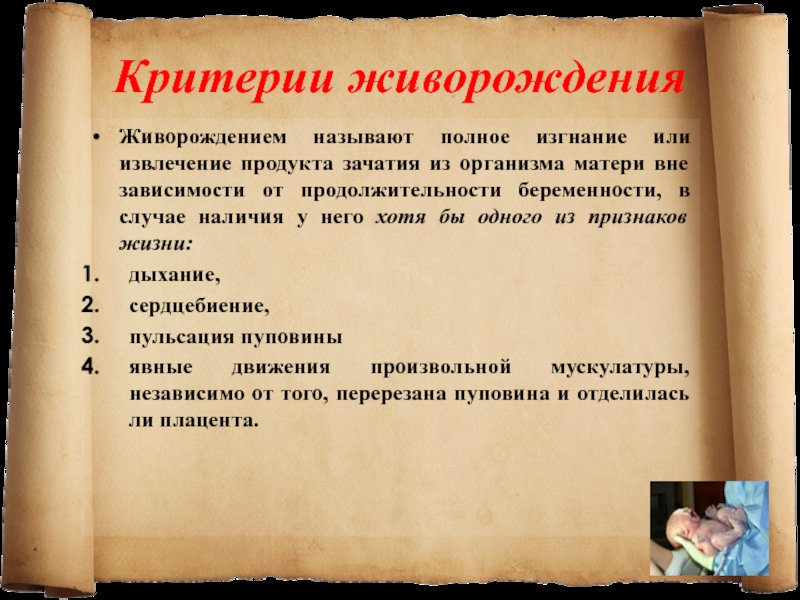 3. Критериями живорождения и мертворождения, рекомендованные ВОЗ