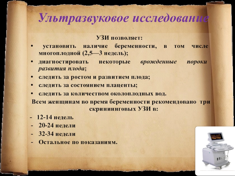 теста и УЗИ в реальном масштабе времени, позволяющая судить о