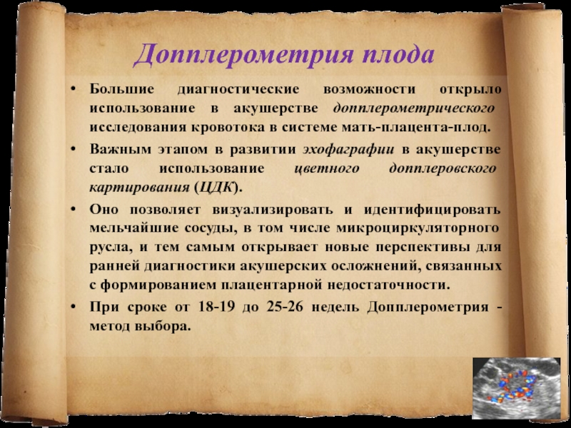 акушерстве стало использование цветного допплеровского картирования (ЦДК).