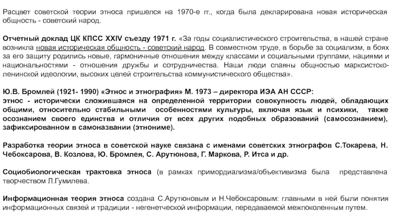 Слайд 3Расцвет советской теории этноса пришелся на 1970-е гг., когда была