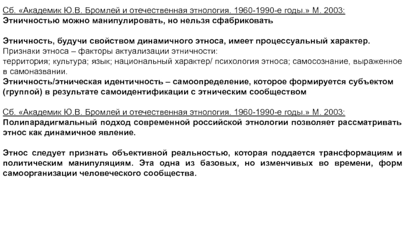 Сб. «Академик Ю.В. Бромлей и отечественная этнология. 1960-1990-е годы.» М. 2003: