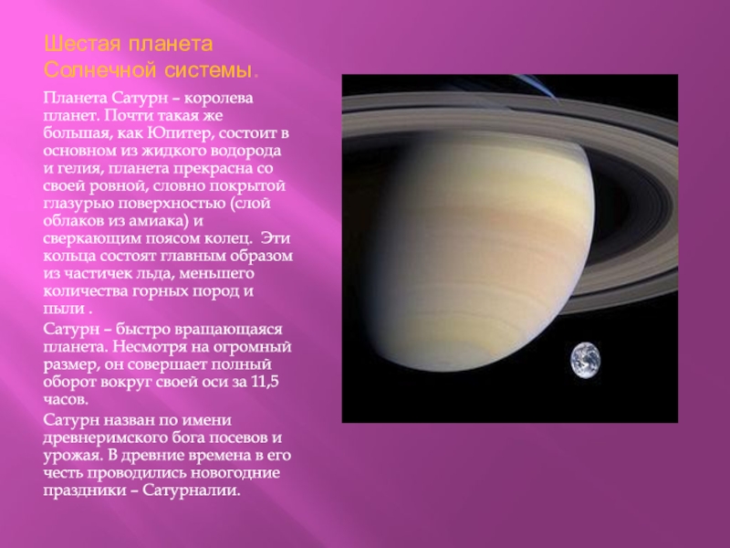 Сатурн назван по имени древнеримского бога посевов и урожая. В древние времена в его честь проводились новогодние праздники – Сатурналии.
